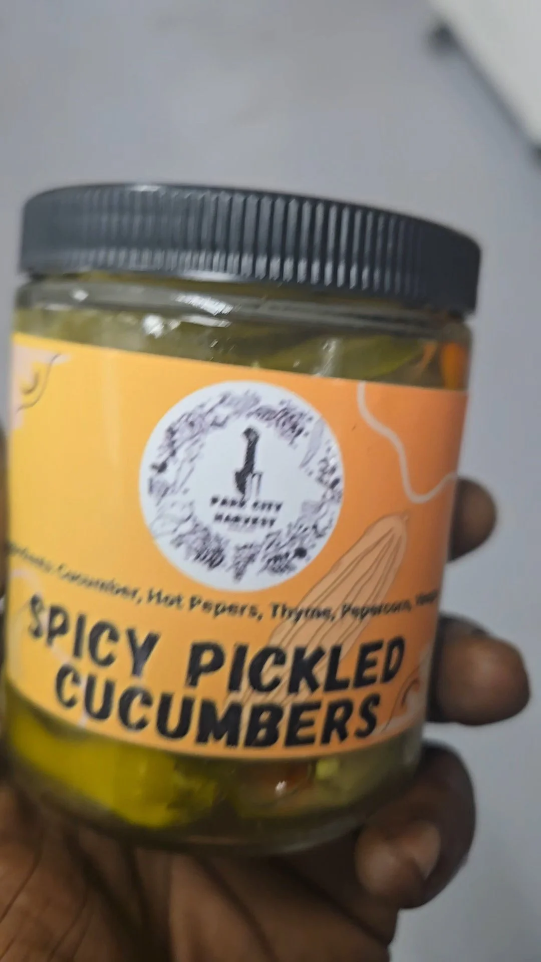 Handcrafted by local farmers using freshly harvested cucumbers, peppers and thyme. Our Pickled Cucumbers bring bold, natural flavor to your table. Each jar is packed with garden-grown goodness and a perfect balance of spice and herbs.